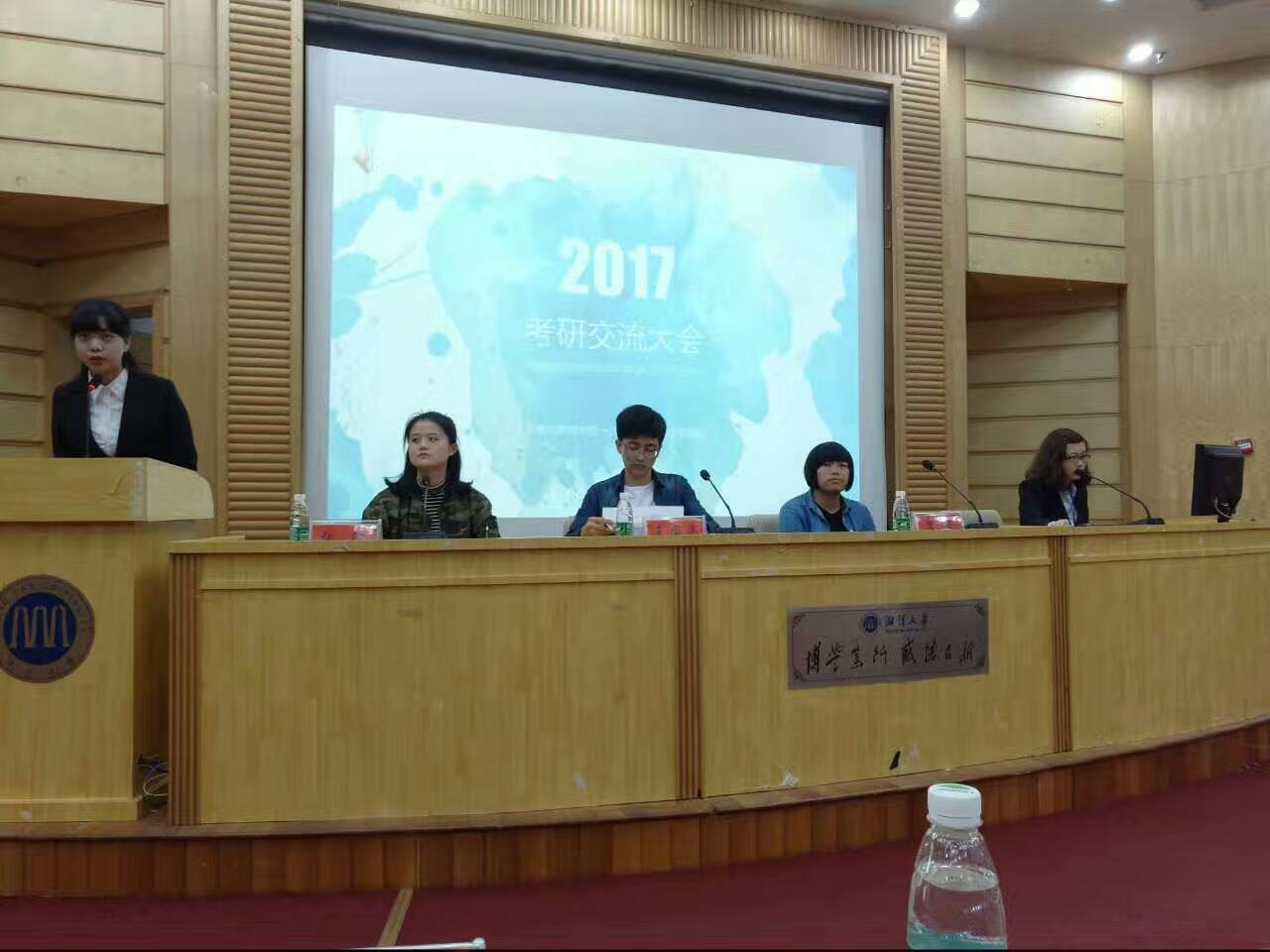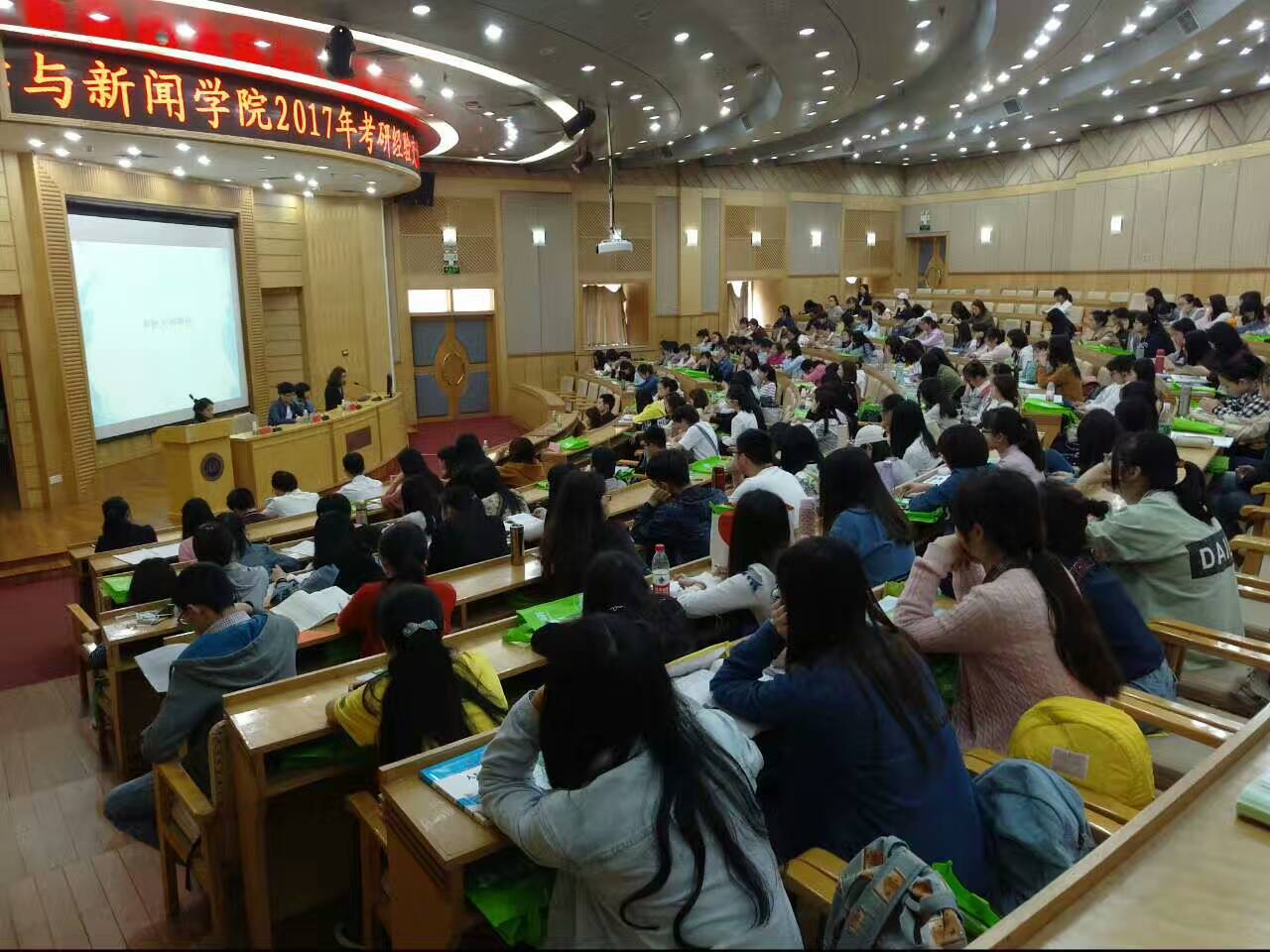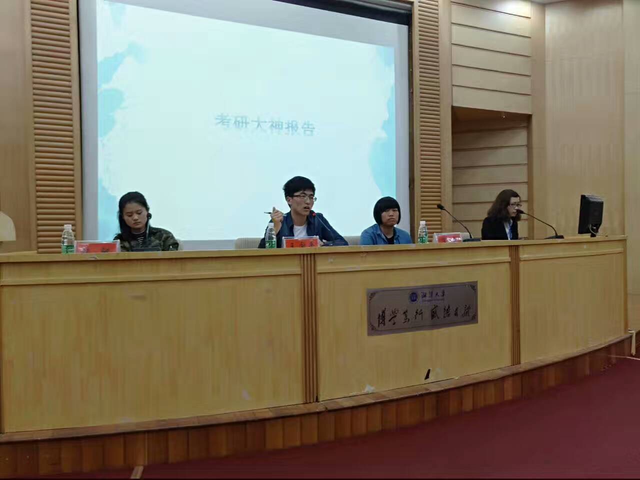 4月20日下午,由糖心AV 第十六届团委学生会主办、第十六届团委学生会学习部承办的2017考研经验交流会在图书馆学术报告厅顺利进行。2013级广播电视学1班王国平同学、2013级汉语言文学2班张驰同学、2013级广播电视学2班肖云同学应邀与大家分享心得、交流经验;暨南大学法学硕士、新东方教师胡彦博老师来校就考研英语学习作专门辅导。