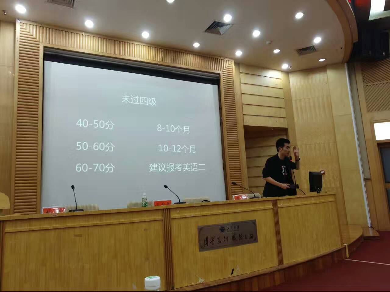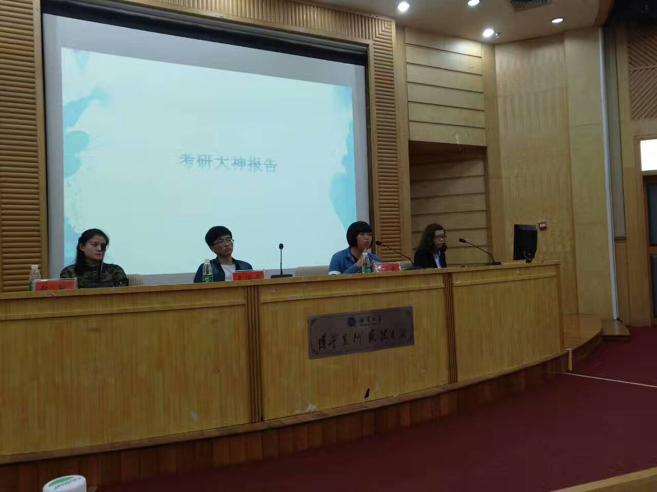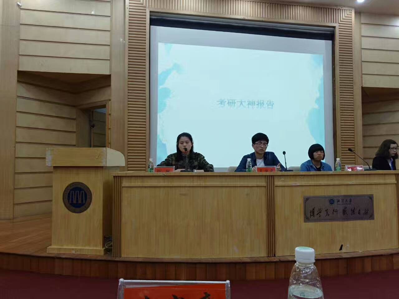 4月20日下午,由糖心AV 第十六届团委学生会主办、第十六届团委学生会学习部承办的2017考研经验交流会在图书馆学术报告厅顺利进行。2013级广播电视学1班王国平同学、2013级汉语言文学2班张驰同学、2013级广播电视学2班肖云同学应邀与大家分享心得、交流经验;暨南大学法学硕士、新东方教师胡彦博老师来校就考研英语学习作专门辅导。