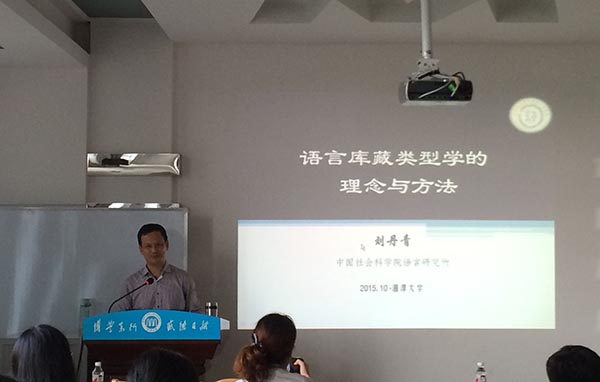 语言库藏类型学的研究是从跨语言的视角看待形式和意义的关系,尤其关注库藏形式手段及其显赫度对语义范畴的制约。刘教授紧紧围饶主题,从三个层次阐释了语言库藏类型学的理念与方法。首先,他介绍了由他倡立的语言类型学的新分支——语言库藏类型学,解释了“语言库藏”是特定语言体统或某一层级子系统所拥有的语言手段的总和。其中刘教授重点提出了库藏类型学的核心概念“显赫范畴”,通过现代汉语连动结构与上古汉语并列连词的比较,以普米语为例的羌语支趋向范畴的显赫表现等研究对这一定义进行了深入阐释。刘教授把语言库藏的“物尽其用原则”定位为超范畴对应,以助词“了”在现代汉语多个语体中均具有以“体”表“时”的功能,佐证了现代汉语虽有“体”无“时”却并非无法表达时范畴。刘教授指出:以往各学派的跨语言研究是寻找具体语言某语义在另一(些)语言中以何种语法手段表示,但有时找到的未必是其他语言中表达同一语义的手段,尽管其可以在交际中完成同样的任务。语言库藏的存在及其显赫度会诱导不同语种的母语在表达同样“意思”时进入不同的“语义”范畴。最后,刘教授还提出语言库藏类型学未来的任务是特定语种的库藏,特别是语法手段库藏的清单及跨语言比较;库藏显赫度的评估以及进一步探讨语言的形-义关系,揭示由显赫范畴的扩展作用而导致的形-义关系的复杂状况,寻找形式和语义结合的不同模式。