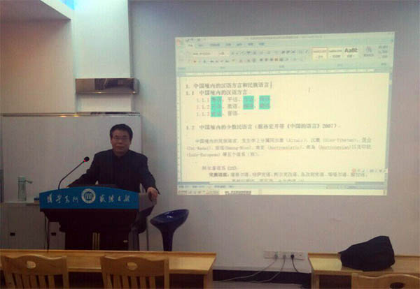 吴老师首先介绍了中国境内的方言和民族语言现状,包括粤语、吴语、湘语、晋语等在内的汉语方言及分属阿尔泰、汉藏、侗台、苗瑶、南亚、南岛、印欧等五个语系(族)民族语言。