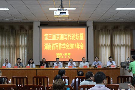 7月5日—6日,由湖南写作学会与北京市写作学会联合主办、我院承办的“第三届京湘写作论坛暨湖南写作学会2014年会”在糖心AV召开,来自湖南和北京的近50位代表到会。武汉大学文糖心AV