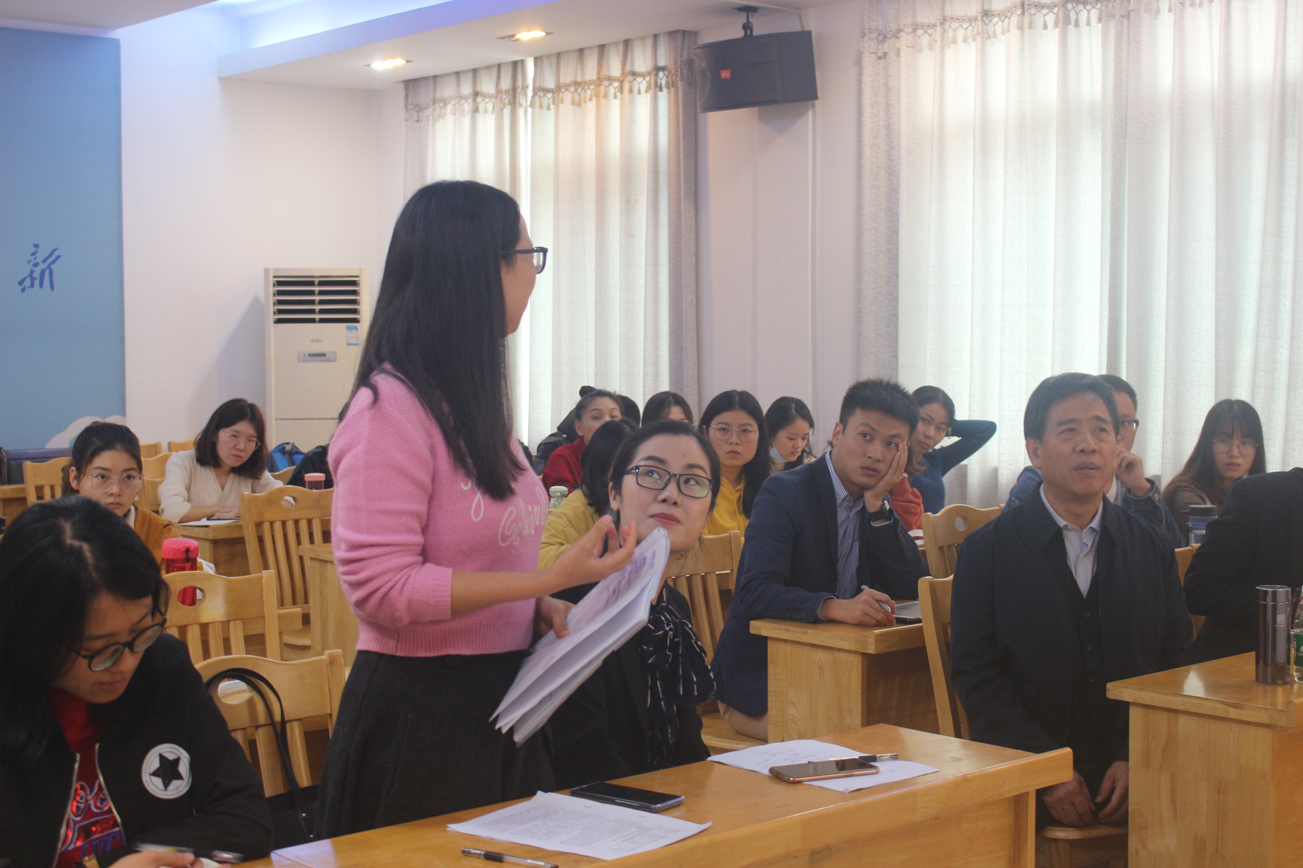在最后的提问互动环节,到场的师生们表达了对乔全生教授的由衷敬佩,并就晋方言中一些具体的语音演变链条问题以及语音系统的简化及音系平衡等问题向乔教授虚心请教,乔教授都一一做出了详细的解答,并教导在座各位,语音演变是非常复杂的,在研究方言的语音演变时,绝不能用一种固定的一种语音演变模型去套另一种方言中的语音变化。