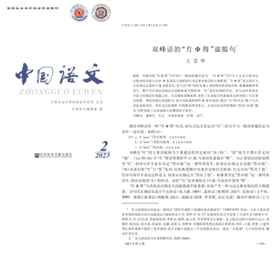 王芸华副教授论文《双峰话的“冇Φ得”虚拟句》刊载《中国语文》(CSSCI)2023年第2期。