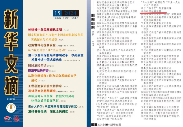 近日,雷磊教授与博士生臧洁发表于《中国韵文学刊》(2024年第1期)的论文《论杨慎的诗词融通观》被《新华文摘》(2024年第15期)论点摘编。