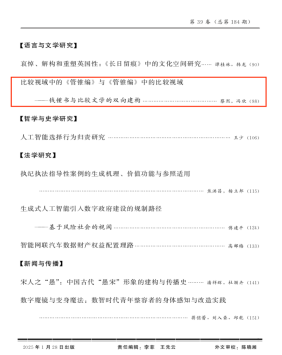 蔡熙教授与冯欣合作在《湖南大学大学学报(社会科学版)》(CSSCI)2025年第1期发表题为《比较视域中的〈管锥编〉与〈管锥编〉中的比较视——钱锺书与比较文学的双向建构 》的学术论文。
