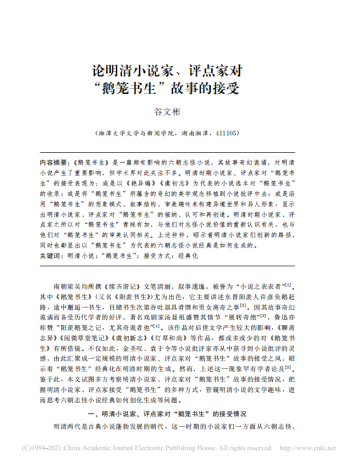 我院古代文学专业谷文彬副教授的论文《论明清小说家、评点家对“鹅笼书生”故事的接受》刊发于《华中学术》2021年第3期(CSSCI)。
