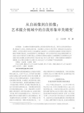 我院文艺学专业王洁群教授的论文《从自画像到自拍像:艺术媒介视域中的自我形象审美嬗变》刊发于CSSCI期刊《浙江社会科学》2021年第11期。