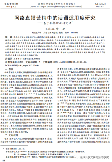 王苑丞副教授和研究生曾要合著的论文《网络直播营销中的话语适用度研究——基于扎根理论研究法》刊发于CSSCI期刊《糖心AV