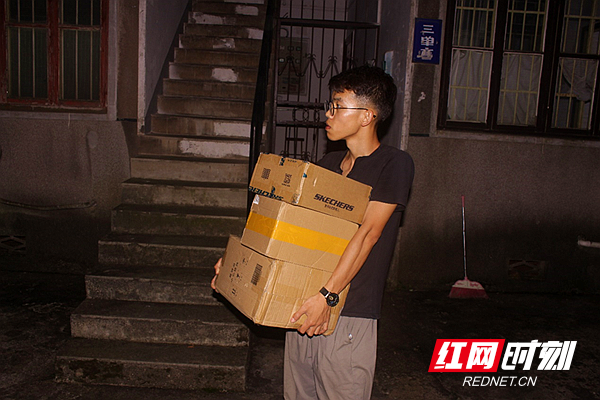 19点30分,宋鲁云将每个人的包裹按楼栋分类,并送至楼下,开始了分发工作。这个是一个比较强的体力劳动,也考验着记忆力。当有人来取件时,他能快速找到对应的包裹。在这3年的工作中,宋鲁云心里装着一张属于自己的“地图”,对每个楼栋、常客的名字都烂熟于心,这让他能高效、准确地分发快递,少走弯路,给客户更好的服务体验。