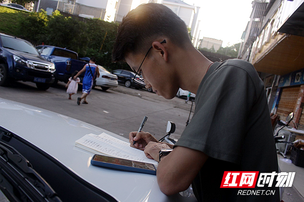 日落前,到各快递点取完全部快递后,宋鲁云将事前准备在本子上的取件码和快递单号一一核对,并按照派送顺序进行分类。“这也是代领快递员最繁琐、枯燥的时候,但也是最锻炼人的时候。”宋鲁云说,忙的时候大概一个星期就要写完一个本子。三年来,宋鲁云已经写完了20多个本子。