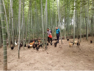 姚所长三天两头来探访,从养殖规模、养殖技术等方面给了很可贵的建议。姚所长建议我们不要把养殖局限在鸡舍里,要让土鸡有充分的运动。于是我们在屋后的竹林里搭建架子。