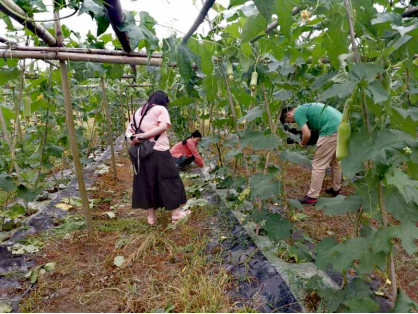村里知道我们要种丝瓜,就请人指导,还补贴了钱。